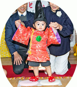 初誕生もち踏みの祝い↑